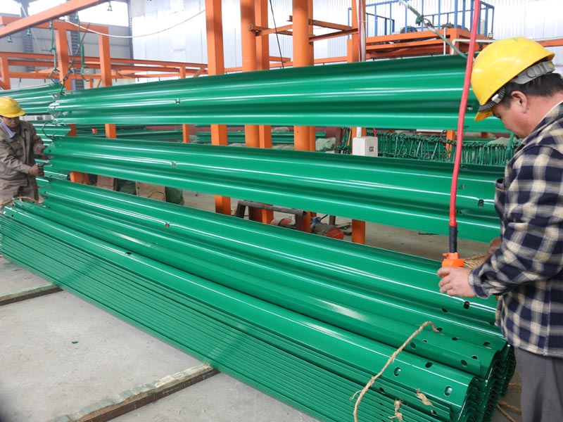 兩波護欄板制造工序:優(yōu)質(zhì)帶鋼經(jīng)壓瓦機成雙波形鋼護欄板型,再經(jīng)過酸洗,后經(jīng)熱鍍鋅、冷鍍鋅、噴塑等防腐處理。